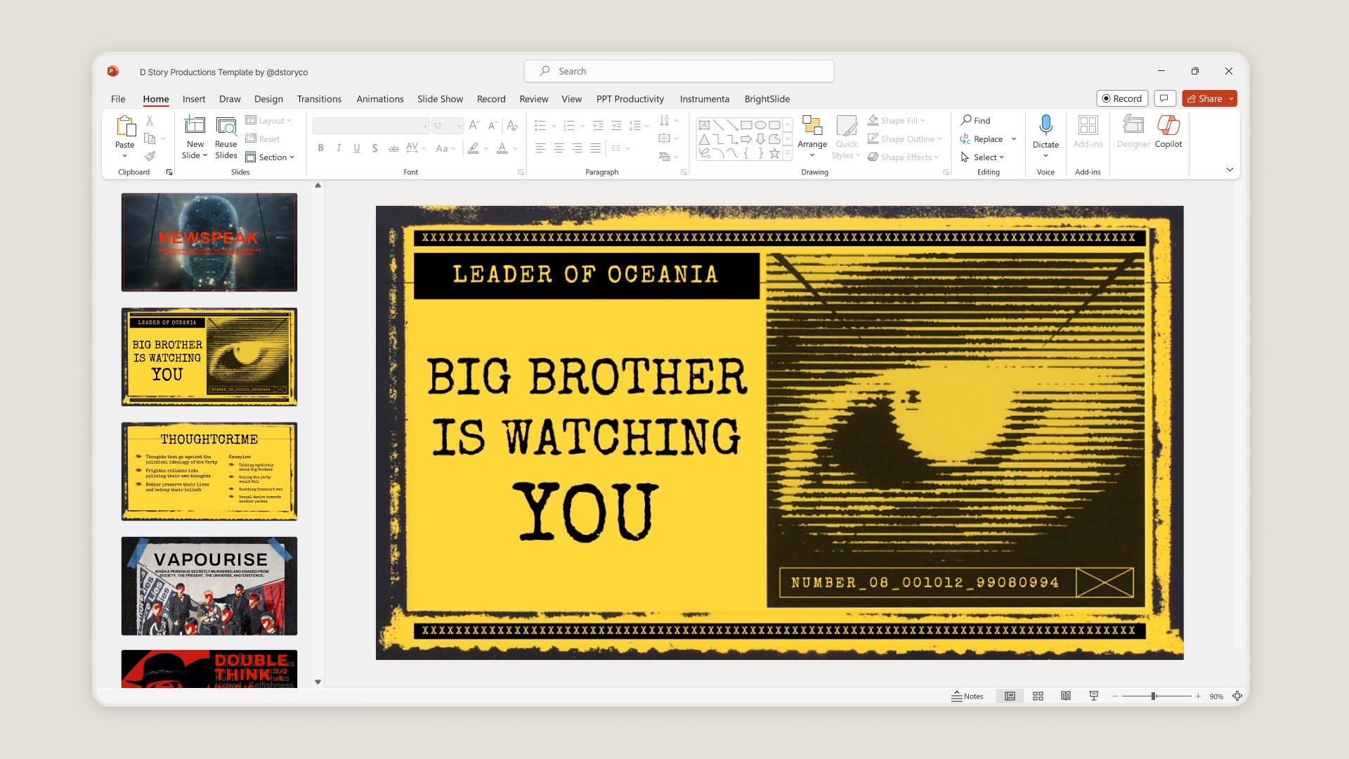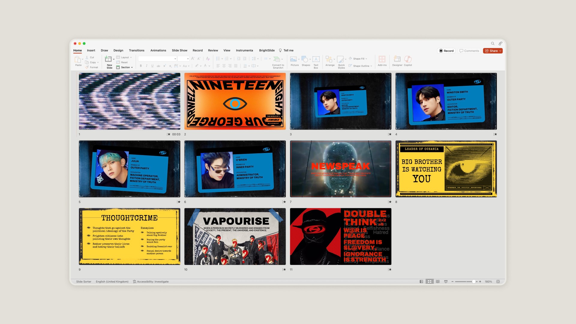 A PowerPoint template inspired by ATEEZ and their album The World EP.1: Movement. The dummy content is about the book 1984.