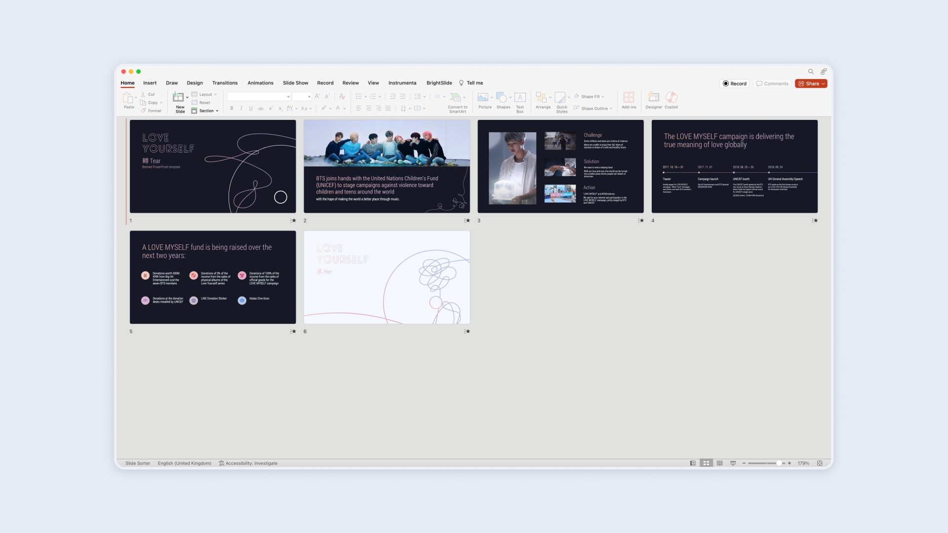 PowerPoint template inspired by BTS's album, Love Yourself: Tear!