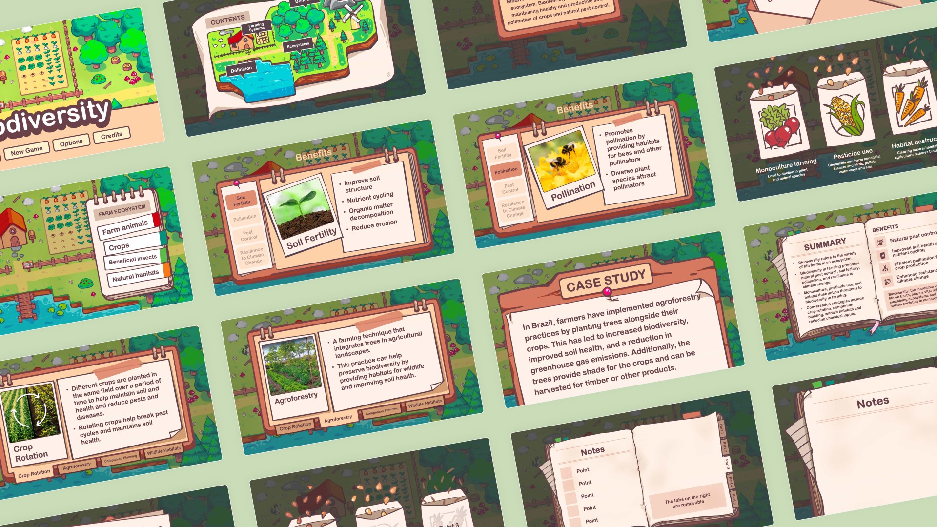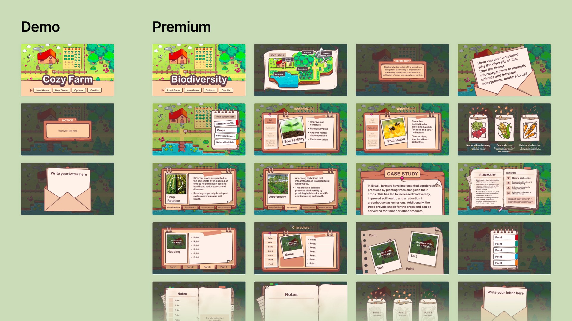 Transport your audience into an aesthetic cozy farming game (inspired by Stardew Valley, Harvest Moon, Moonstone Island etc.) through this PowerPoint presentation template!