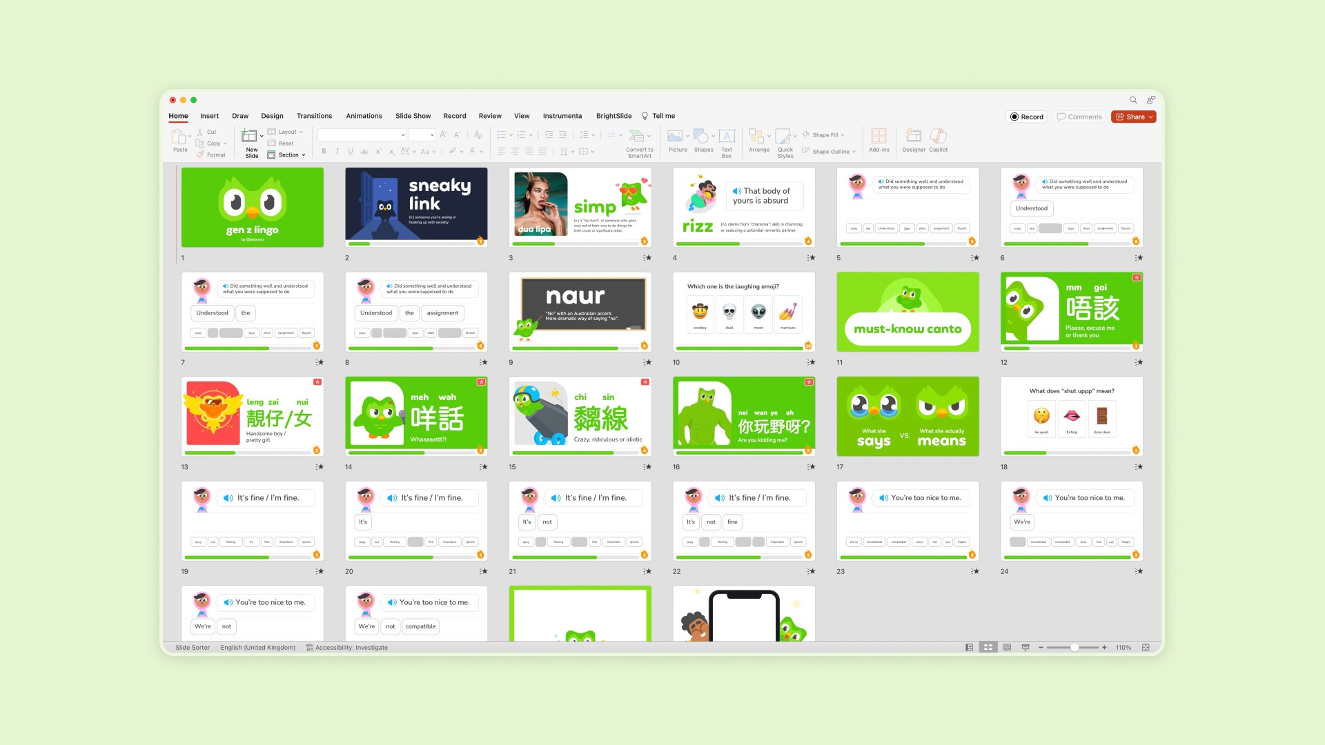 PowerPoint template inspired by Duolingo!
