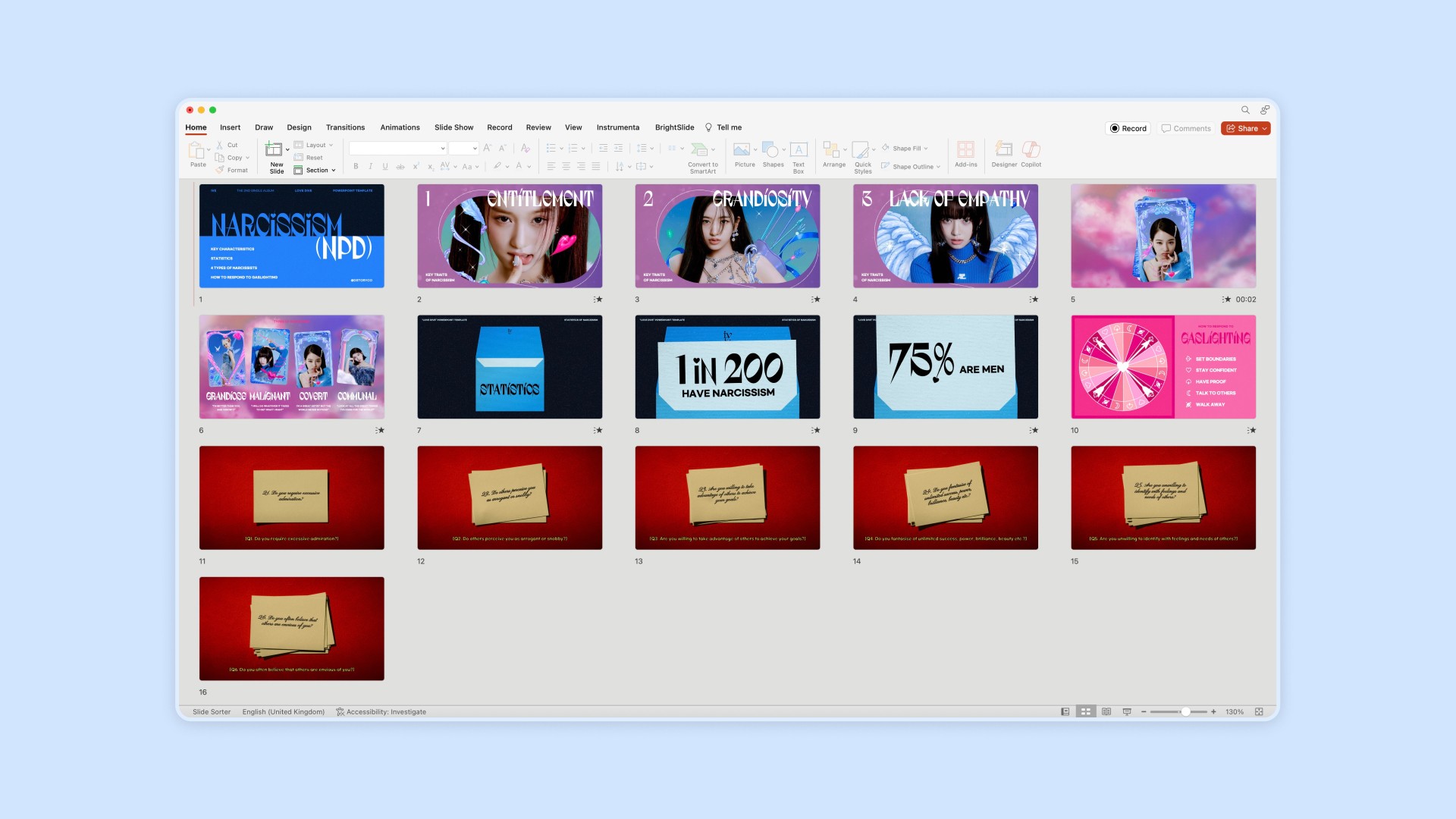 A PowerPoint template inspired by IVE and their album Love Dive!