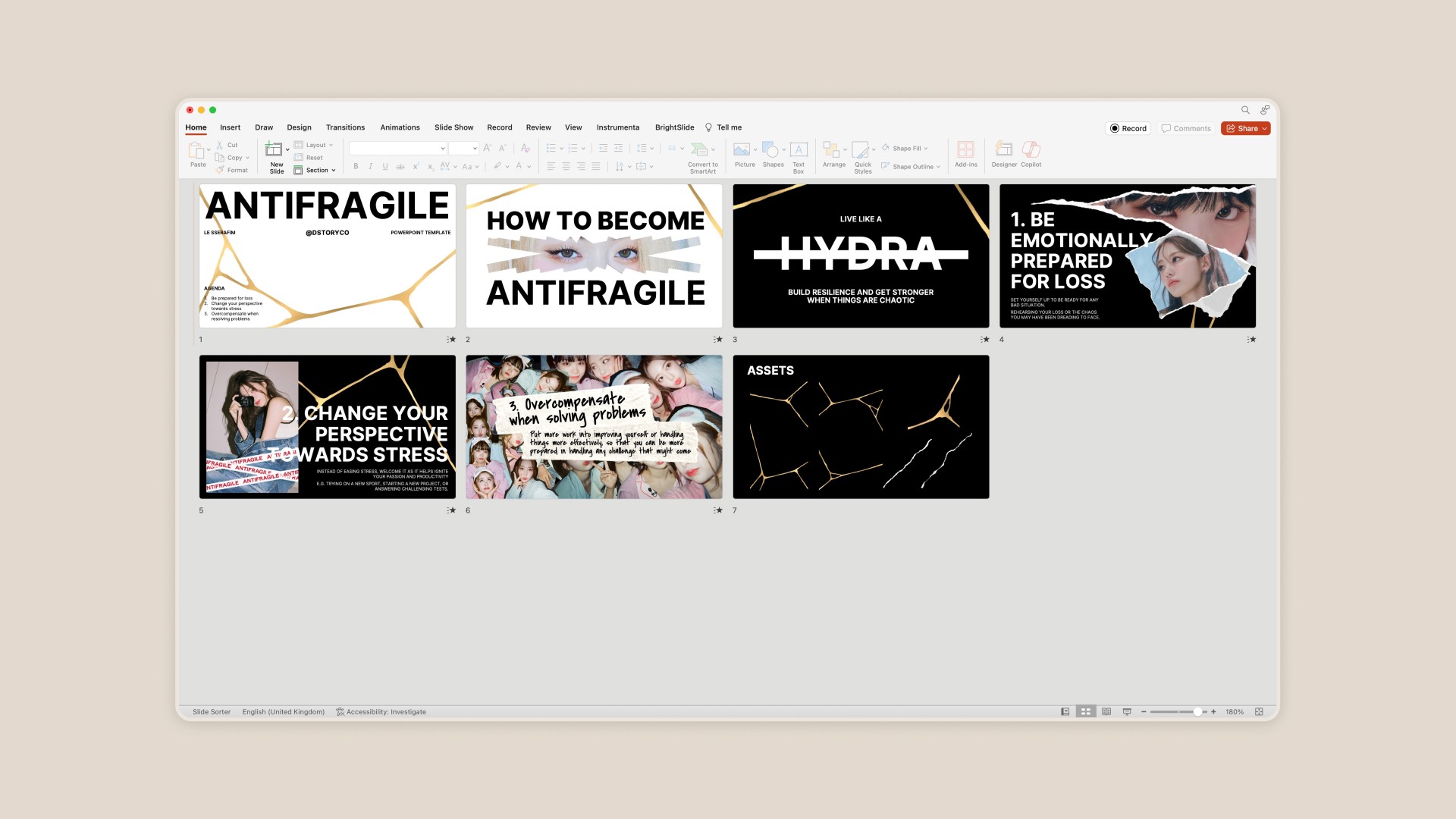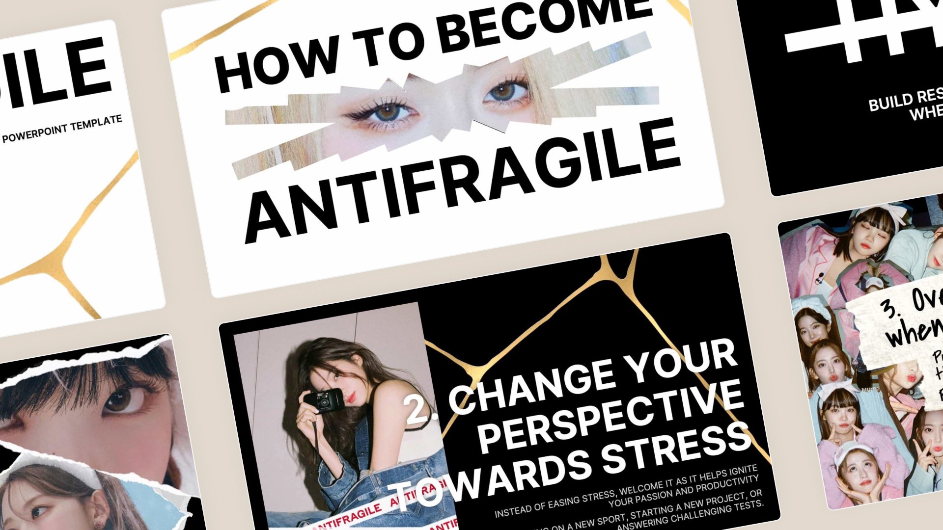 A PowerPoint template inspired by Le Sserafim and their album Antifragile!