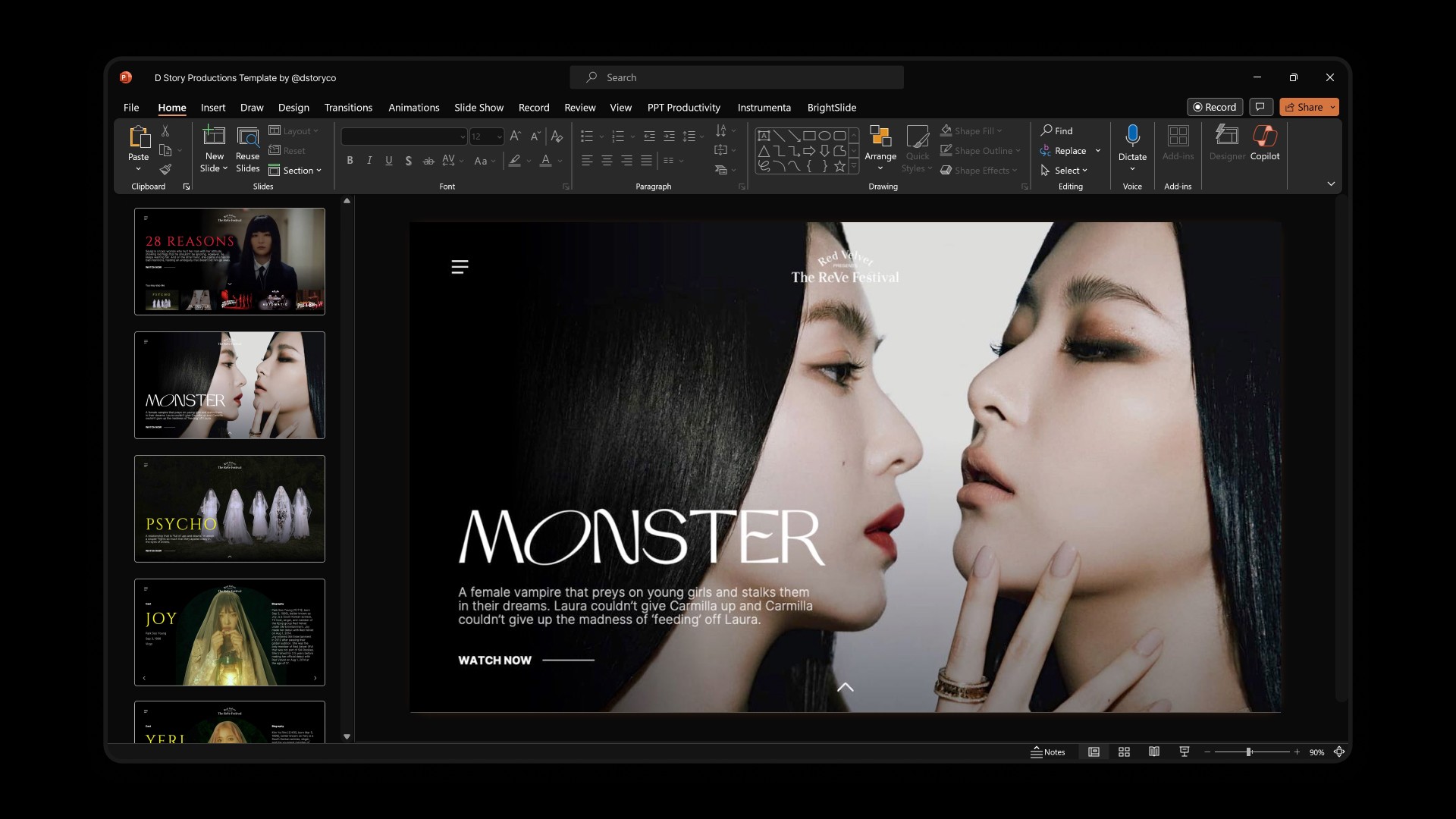 A PowerPoint template inspired by Red Velvet & Netflix & Horror Films for Halloween!