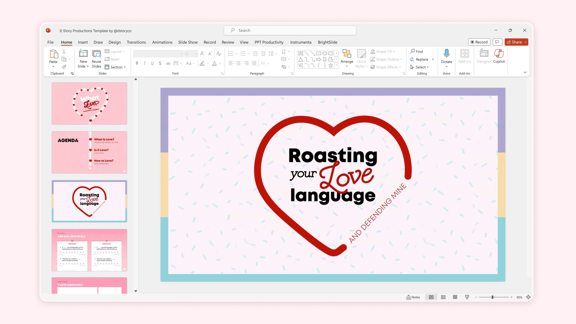 A PowerPoint/Google Slides template inspired by Korea's biggest k-pop girl group, TWICE and their album What is Love?