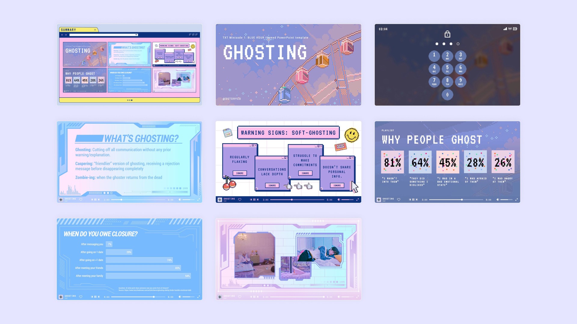 A PowerPoint template inspired by TOMORROW X TOGETHER and their album Minisode 1 : Blue Hour!